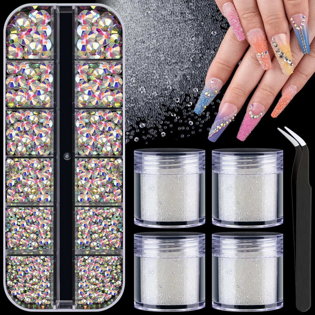 1.5-6Mm Round Ab Nail Rhinestones Crystals For Nail Art Manicure And Clear Pixie Caviar Beads, Sugar Tiny Dust Glass Iridescent
