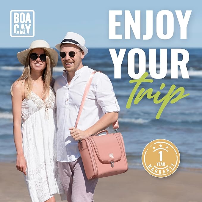 • If you want a large makeup bag, a cosmetic, or an accessories organizer, Boacay toiletry bag is for you. It is multifunctional, has metal zipper pulls, and it’s made of only high-quality materials.