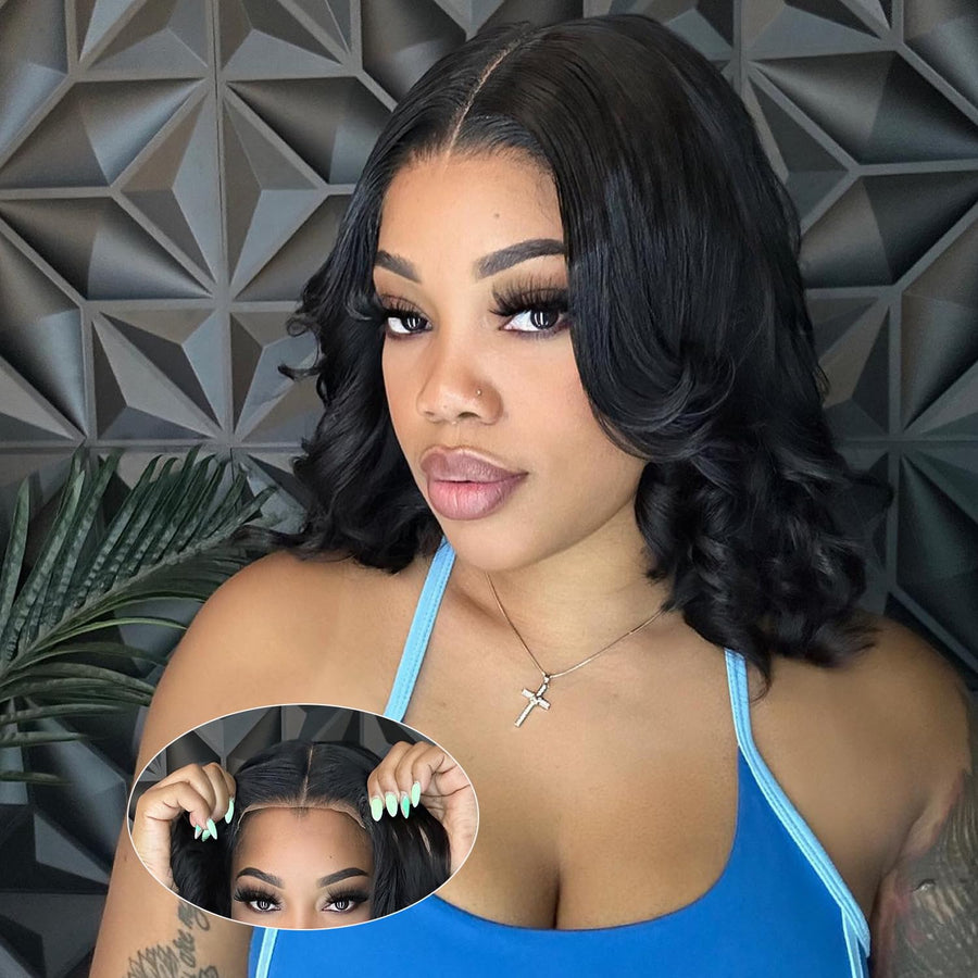 Bob Wig Human Hair Wear and Go Glueless Wigs Human Hair Pre Plucked Pre Cut 4x4 Transparent Lace Closure Bob Wigs Human Hair for Women Short Bob Wigs Human Hair 8inch