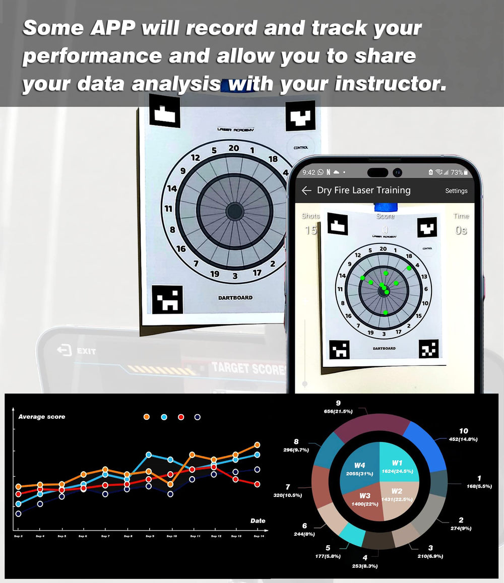 - Convenient: Training without consuming any ammunition in the room. The dry fire laser can be used with Online APPs, laser training target. Providing visual and quick feedback to make your training highly effective and more fun.