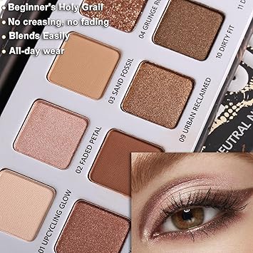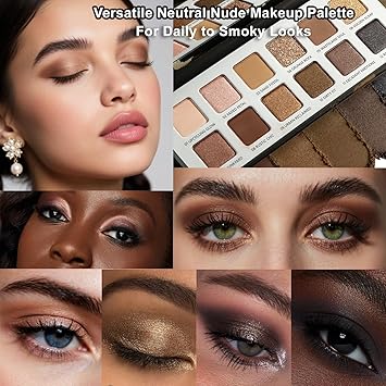 - 🪴12 VERSATILE NEUTRALS FOR EVERY OCCASION — Create flawless looks with 12 curated neutral nude shades—warm browns, champagne golds, taupe, rose hues and smoky black—perfect for natural daytime glam, grunge-inspired eye looks, sultry smokey eyes, or bold party vibes. Ideal for beginners and pros, the neutral eyeshadow palette blends seamlessly for everyday, office, or night-out soft glam makeup. No wasted colors!