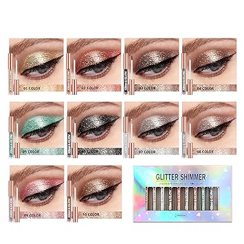 - 【Glitter Liquid Eyeshadow】The glitter liquid eye shadow designed for glitter & shimmer eyes looks which successfully spotlights the eye contour and make you be the attention-catcher in each event.