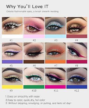 - 【BEST GIFT 】Beautiful packaging and 12 colorful eyeliner are the perfect gifts. Perfect as a gift send to Lover, Family and Friends when Valentine's Day, Halloween, Birthday and other Festival!
