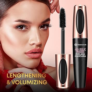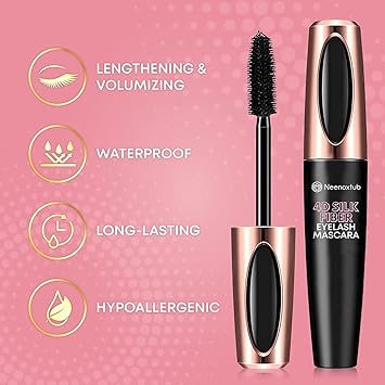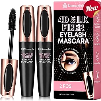 4D Silk Fiber Lash Mascara, Lengthening and Thick, Long Lasting, Waterproof & Smudge-Proof, Hypoallergenic Formula 2 Pack Black