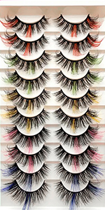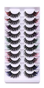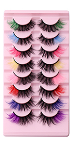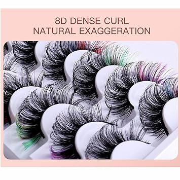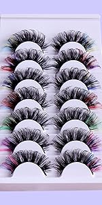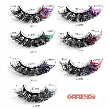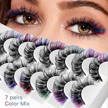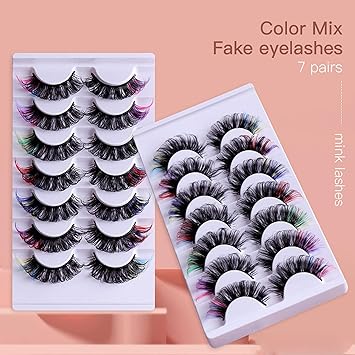 7 Pairs Colored False Eyelashes, 3D Mink Faux Lashes with Color Tips, Dramatic Fluffy Volume Strip for Cat Eye Look, Colorful Lash Extensions Makeup Artists, Cosplay, Parties
