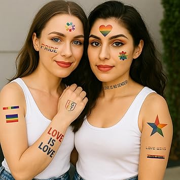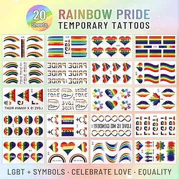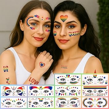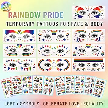 20 Sheets Face & Body Pride Temporary Tattoos-Rainbow LGBT Gay Stickers for Parades, Equality Events Festivals-Waterproof, Skin-Friendly Adults&Kids(10 Eye Designs + 10 Body)