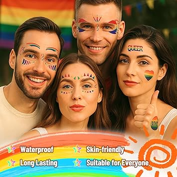 • SKIN-FRIENDLY & SAFE FOR EVERYONE: Crafted with gentle, hypoallergenic ingredients, this kit is suitable for all skin types and ages. It provides a worry-free way for kids, teens, women and men alike to enjoy creative body art during celebrations.