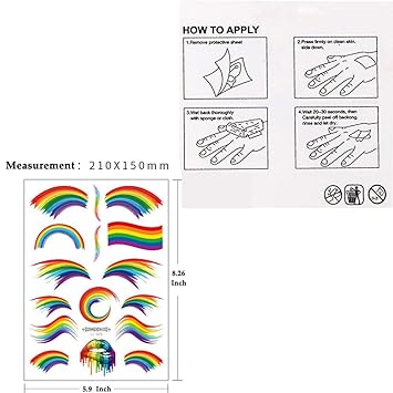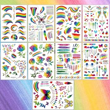 140PCS Colorful Temporary Tattoos - Rainbow Lips Butterfly Rose Heart Tattoo Body Stickers Pride Equality Parades Celebrations (9 Sheets)
