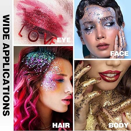 This glitter gel is perfect for your body, head to toe: face, eyeshadow, cheeks, lips, and hair! Be wild and prepare for festivals, clubs, parties, raves, costumes, themed parties, the ’s year-end party, or a Christmas party with your friends, you can rock that sparkly look with glitter gel. This takes hair and make-up to another level. Mix and your favorites.