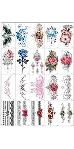 • Package:12 sheets flower temporary tattoos,size: 16.54*2.4 inch.