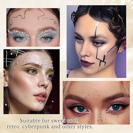 BOROLA 882Pcs Self-Adhesive Face Body Gems Rhinestone Stickers for Lips Nose Eyebrows Hair No Piercing Needed Jewels Makeup Kit Includes Tweezers Women DIY Nail Festival Party Cosplay
