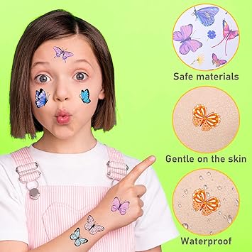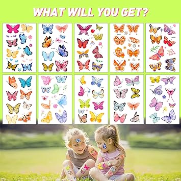 200 Pcs Butterfly Tattoos Temporary for Kids - 20 Sheets | Colorful & Waterproof Fake Tattoo Stickers Girls Beautiful Art Face Arm Body Sticker Birthday Halloween Party Favors Goodie Bags,