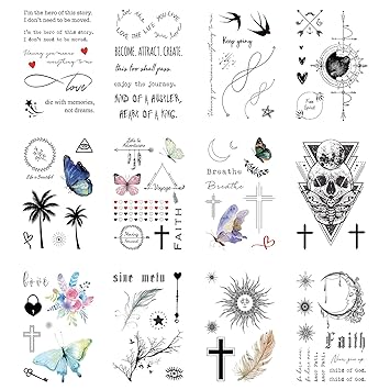 Bohemian-inspired Realistic Temporary Tattoos for Women and Men - Waterproof, Long-lasting, Meaningful Tattoo Designs including Butterfly, Moon, Sun, Love, Letters Words