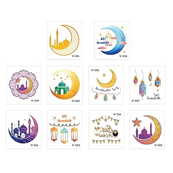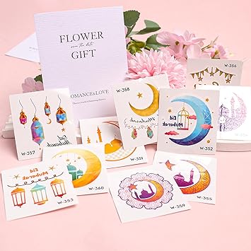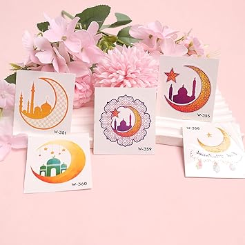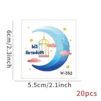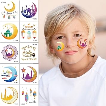 20Pcs Happy Ramadan Temporary Tattoos Eid Mubarak Sticker Moon Star Castle Fake Tattoo Stickers for Kids Boys Girls Body Arm Neck