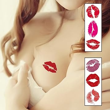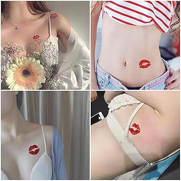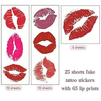 65Pcs Red Lips Temporary Tattoo Stickers, Self-Adhesive Fake Tattoos, Water-Proof Face Stickers for Adult Women, Girls