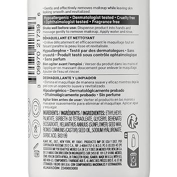 Great for sensitive, dry skin, the Almay Hydrating Makeup Remover & Cleanser™ dual-action makeup remover effectively dissolves even stubborn long wear makeup while cleansing. Formulated with hyaluronic acid to help moisturize, skin is left looking smooth and radiant, and feeling clean and nourished. Leaves behind no oily residue.