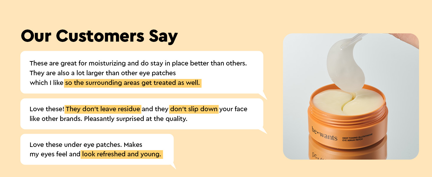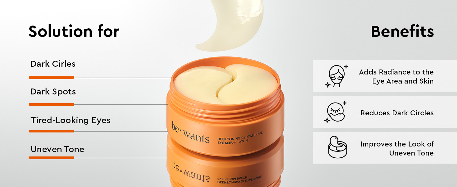 - Brightening eye patch care with glutathione: These hydrogel patches are infused with deep toning glutathione to visibly reduce dullness, dark spots, and pigmentation under the eyes, enhancing overall skin clarity and radiance.