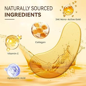 30P Under Eye Patches for Dark Circles and Puffy Eyes | Infused Gel 24K Gold Masks Skin Care of Puffiness & Bags Treatment Women Ideal Beauty (30 Pairs, Gold)