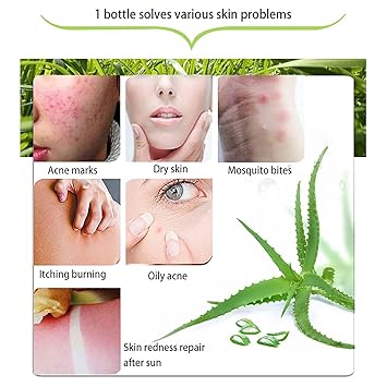- REPAIR DAMAGED SKIN: Aloe vera gel can repair dry skin, heal minor wounds and sunburns, instantly relieve facial redness, and can also help speed up the natural healing of damaged skin such as acne, scars, razors, minor burns