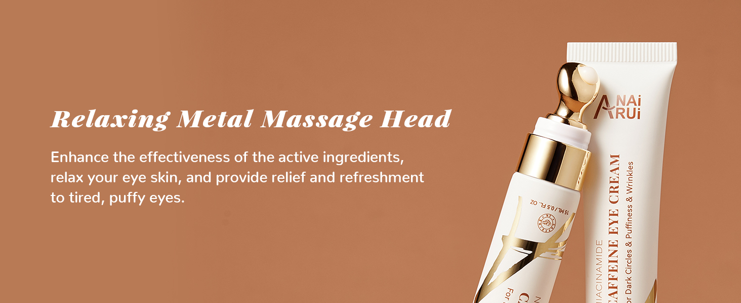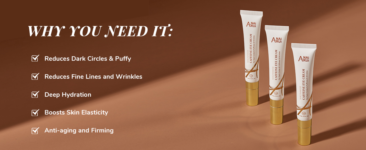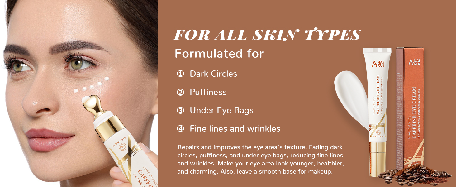ANAI RUI Caffeine Eye Cream, Niacinamide Cream for Dark Circles and Puffiness, Anti Aging & Friming with Roller, Under Puffy Eyes, Bag Treatment 0.5 FL.OZ