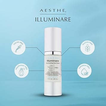 Aesthe Illuminare Illuminating Eye Cream - Color-Free, Fragrance-Free, Gluten-Free Skincare for Eyes with Thioctic Acid, Copper & More For Puffiness Dark Circles Tighten Smooth 1 fl oz