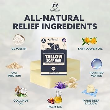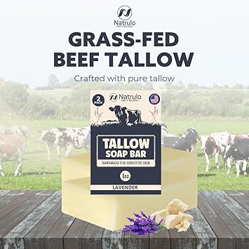 Beef Tallow Soap Bar - All Natural Grass Fed Lavender Moisturizing Face & Body Wash Great for Eczema, Dry, Itchy, Sensitive Skin Handcrafted Bath Adults, Kids, Made in USA