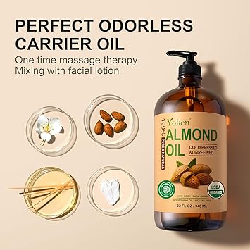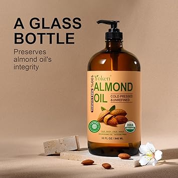 Almond Oil 32 fl oz 100% Pure Cold Pressed Glass Bottle Oils for Skin, Hair, almond Hair Moisturier, Smooth and Soft Carrier DIY, Massage