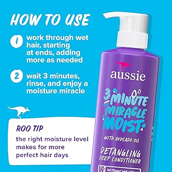 Aussie Miracle Moist Shampoo and Conditioner with 3 Minute Deep Conditioner, Avocado & Jojoba Oil, Paraben-Free, Moisturizes Detangles, All Hair Types, Citrus Floral Scent, Pack 68.4 Fl Oz