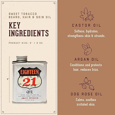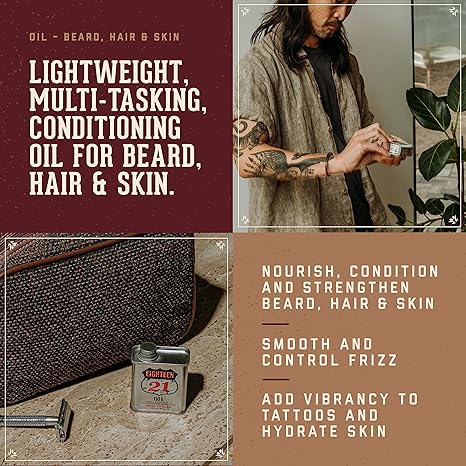 18.21 Man Made Hair, Skin & Beard Oil for Men, 4 Scents - Non-Greasy, Conditioning Balm with Castor Seed, Jojoba, and Argan Oils Premium Tattoo Mustache Care Products