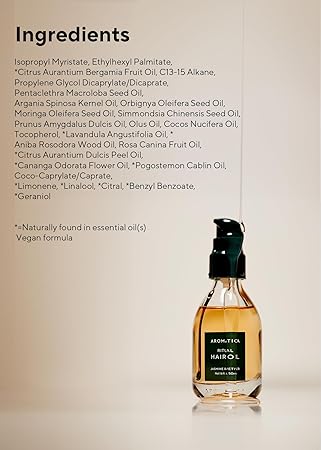 - [AROMATICA Natural Ingredient] Made with safe, natural ingredients like Moringa, Argan, Jojoba, Almond, Coconut, and Rosehip oils, this ritual hair oil nourishes, restores, and transforms your hair for a healthy shine