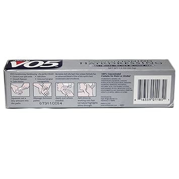 Alberto VO5 Conditioning Hairdressing is specially formulated for gray, white, and silver blonde hair, providing essential nourishment and a brilliant shine. This advanced blend of five of the earth’s best moisturizers and emollients revitalizes dull, dry hair, controls split ends, smooths flyaways, and adds a natural-looking shine. 100% concentrated with no water or alcohol, it ensures long-lasting results without weighing hair down. Simply apply a small amount, massage into your palms, and distribute through your hair to achieve a healthy, manageable look.