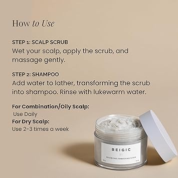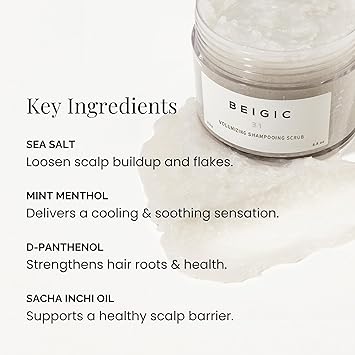 BEIGIC Volumizing Shampooing Scrub - Vegan Clarifying Scalp Exfoliator & Shampoo with Sacha Inchi Oil Sea Salt for Buildup, Flakes Itchy Scalps (8.81 Oz)