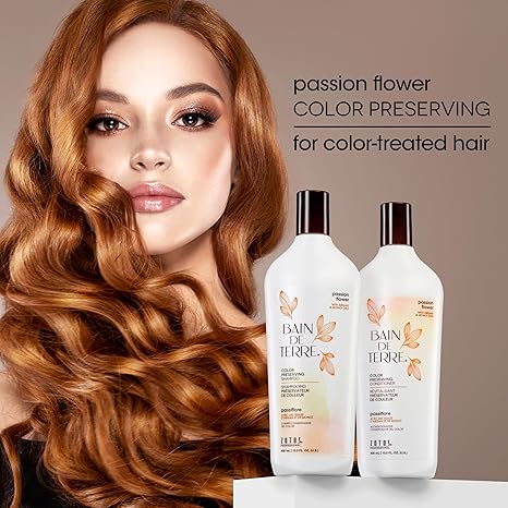 Bain de Terre Passion Flower Color Preserving Shampoo, for Vibrant & Protection from Fading, with Argan Monoi Oils, Paraben-free, Vegan