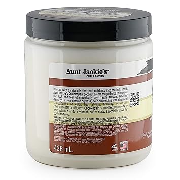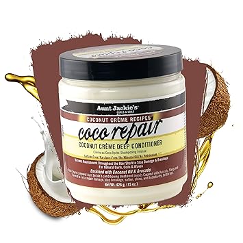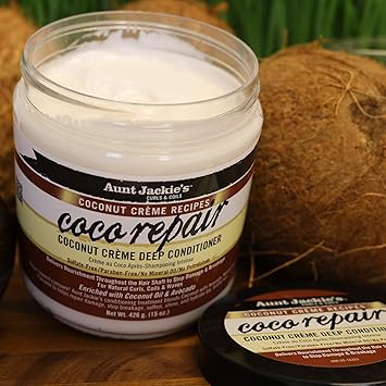 Aunt Jackie's Coconut Crème Recipes Coco Repair Deep Hair Conditioner, Delivers Nourishment, Stops Damage, Breakage for Natural Curls, 15 oz