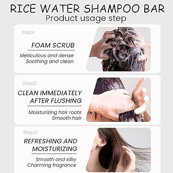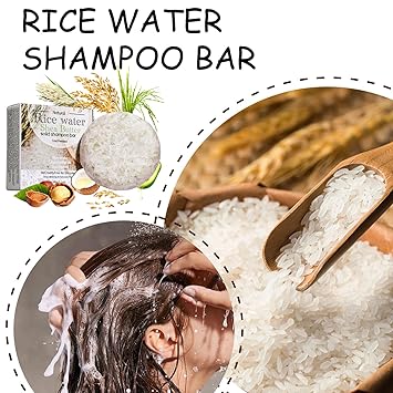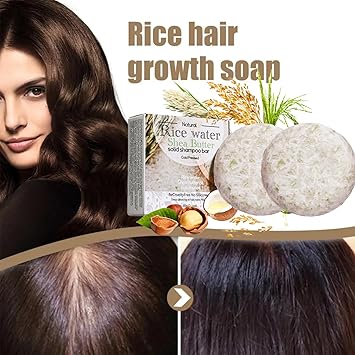 2Pcs Rice Water Shampoo Bar for Hair Growth, Protein Bulk, Root White Coverage Darkening, Volumizing and Strengthening