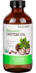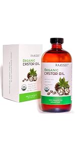 2 Pcs Certified Organic Castor Oil, Natural Oil Cold Pressed in Glass Bottle, Massage Pure for Hair Growth Eyelashes Eyebrows Lash Serum - Hexane Free, 8 oz Per Bottle