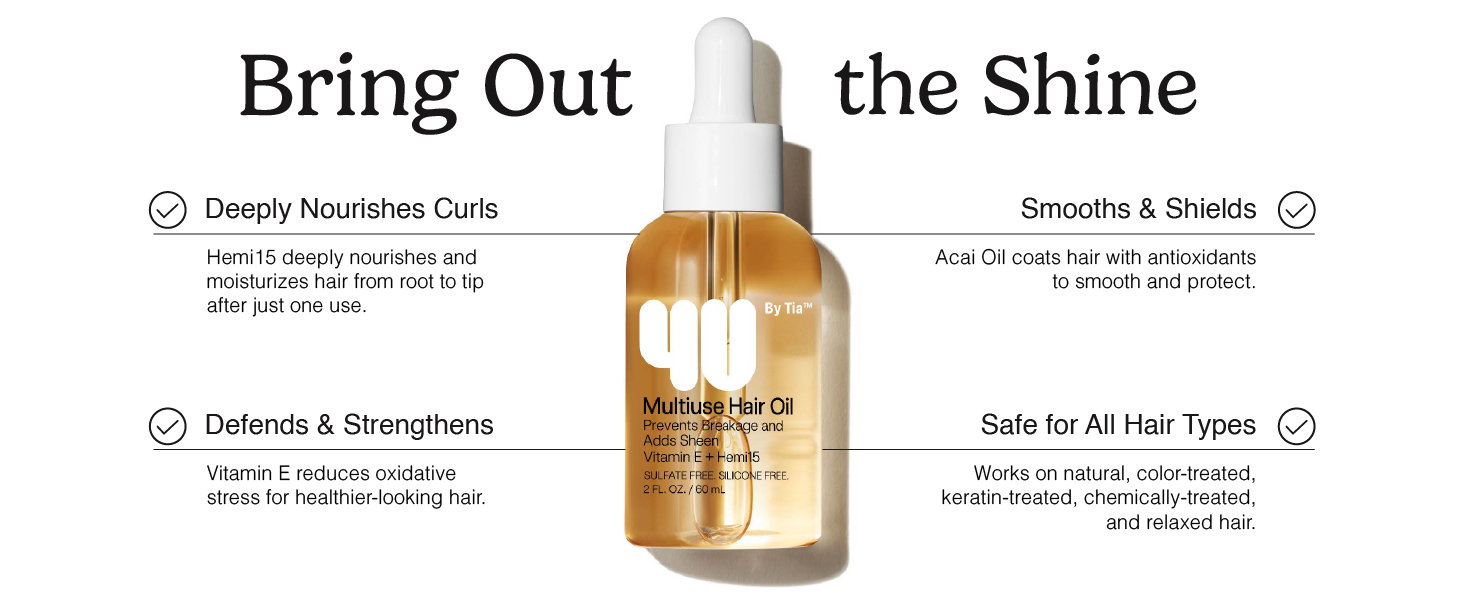 4U by Tia Multi-Use Hair Oil - 3A-4C Type HEMI15 & Vitamin C Balm Nourish, Repair, Frizz Control, Natural Ingredients (2 fl oz)
