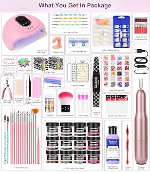 • Come with Lots of Nail Accessories--Nail lamp,Nail Drill File Machine , nail drill bits , nail form sticker,acrylic nail brush etc.. more easy to care nails. Also come with popular letter nail sticker and nail glitter powder , make your nails more specials.