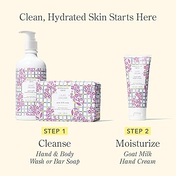 • GOAT MILK HAND CREAM - This nourishing, non-greasy formula is made with vitamin-rich goat milk and shea butter to instantly hydrate and repair dry, cracked hands while the refreshing scent of lilac soothes the skin and the senses.