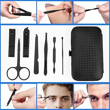 7pcs Manicure set, Nail Clippers Kit, Stainless Steel Clipping Tools Portable Travel Grooming The Best Gift with Luxurious Case (Black-7)