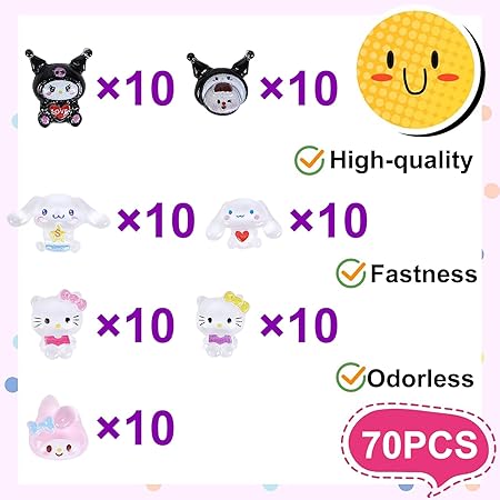 • 【VERSATILE】70 pcs kawaii nail charms,7 styles of slime charms and 1 beautiful box, nail charms that can be used for nail art, slime making, and other DIY crafts.