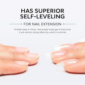 - 1-2cm extend would be recommended. NOTE: The builder color gel is thick and it will remain sticky after dry. NOTE: Color is translucent/sheer/clear . Nice for a natural looking nail. Please be kindly aware that if you are looking for a opaque nail look, you would need to apply more than 2 coats. Please note: Due to the lighting and screen setting, color may vary slightly from the picture.
