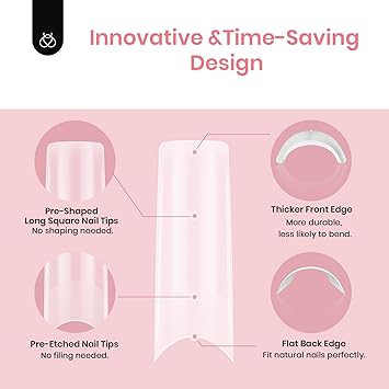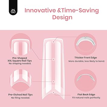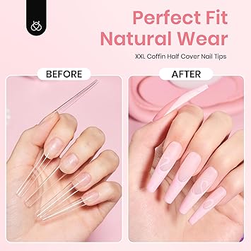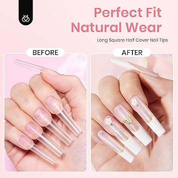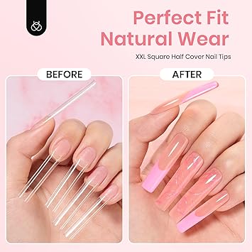 - 【XXL Extra Long Square Nail Tips】: Beetles has specially launched these XXL half-cover square nail tips with glue for those who love long nail art design. They can be paired with acrylic powder to create luxurious ultra-long acrylic nails. Sturdy and not easy to bend.