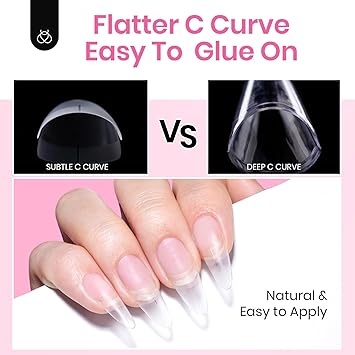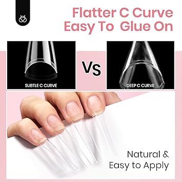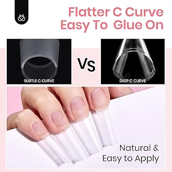 - 【Flatter C Curve Nail Tips】: The curvature of the back edge of the square nail tips is natural, and the C-curve fits the natural nails more seamlessly. We have made every effort to solve the problem of 'nail tips being too curved and thick, making it difficult to adhere to natural nails.'
