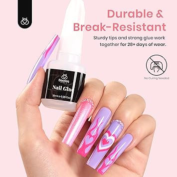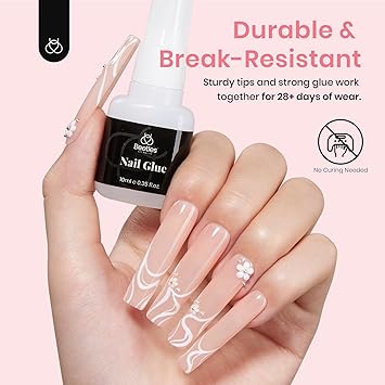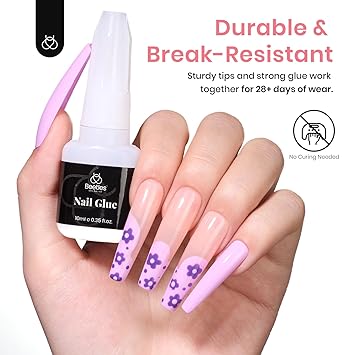 - 【Nail Glue No Uv Light Needed】:We put a quick dry nail glue in this nail tips set as a gift. Nail glue is Long lasting and durable, with a large volume (10ml/0.35 ounce per bottle), the gel is more viscous and has good toughness. The correct use can ensure that the false nail tip / other small pieces remain on the nails for more than 28 days.