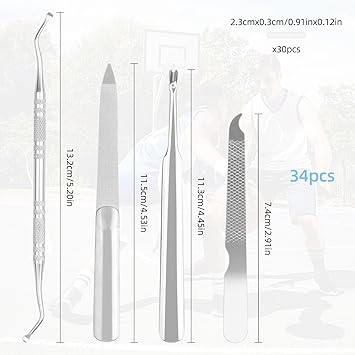 4 Pack Ingrown Toenail Tools Kit with File and Lifters w/ 30PCS Strips, Steel Removal Tool Kit, Manicure Treatment Pedicure for Feet Under Nail Cleaner