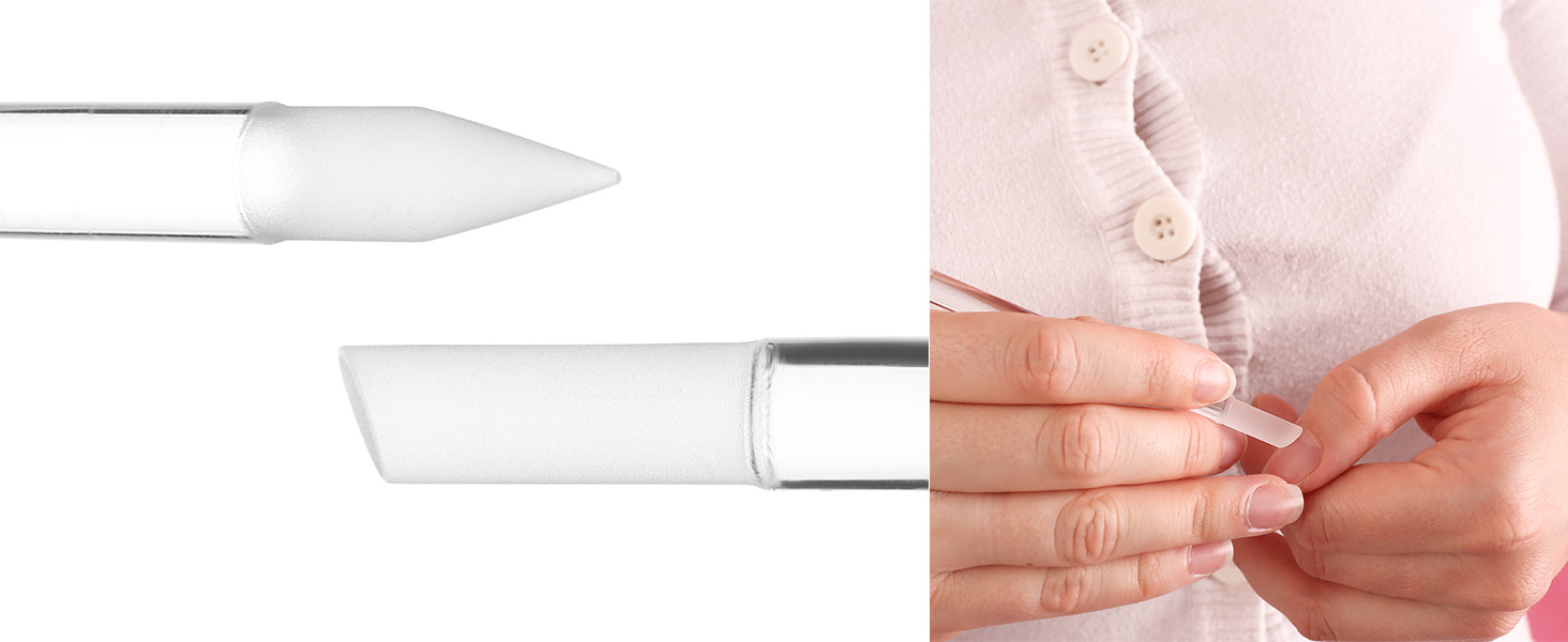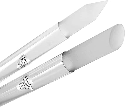 • Bona Fide Beauty Glass Cuticle Pusher: the slanted side is ideal for gently pushing back and trimming excess natural fingernail cuticles. The pointed glass cuticle stick is effective in cleaning and trimming hard-to-reach places around and under the nail.