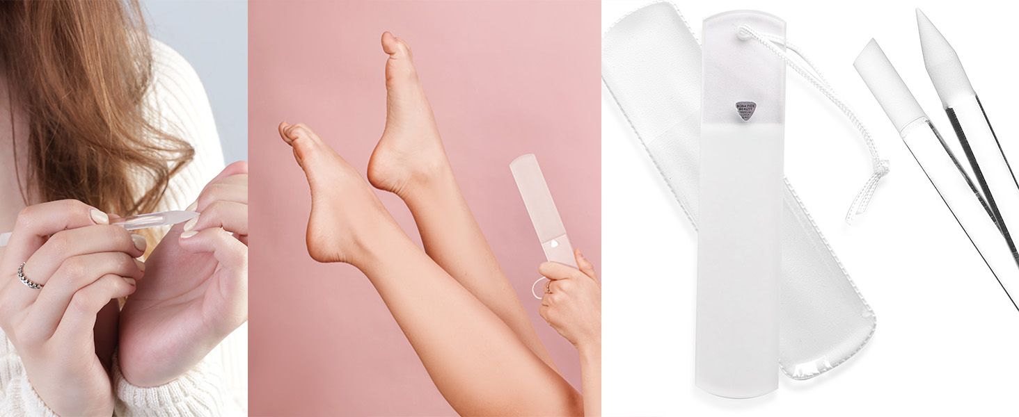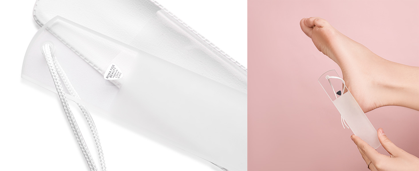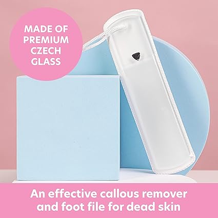 • Gentle Glass Foot File: an effective callous remover and foot file for dead skin, this pedicure foot scrubber is the answer to beautiful smoother feet. Unlike harsh foot rasps and metal files, Bona Fide Beauty's glass foot file will not tear or rip at the skin!