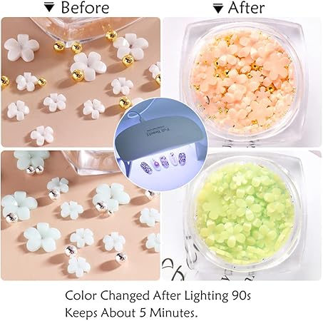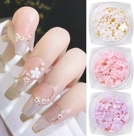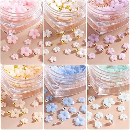 3D Flower Nail Charms, 6Boxes Rhinestone for Acrylic Nails Cherry Blossom Spring Art Supplies with Pearls Manicure DIY Decorations Women Girls