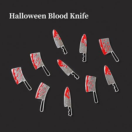 12 Pcs 3D Halloween Nail Charms Blood Knife Art Alloy Nails Metal Charm Rhinestone Design Jewelry Decor for DIY Accessories
